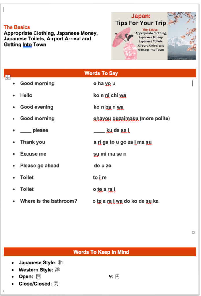 The ten lessons in the JAPAN: Tips For Your Trip course are listed below.